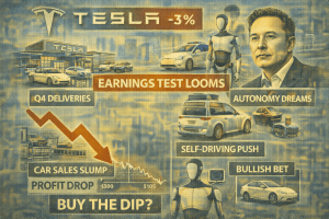 Tesla stock (NASDAQ: TSLA) eased lower on Monday as investors braced for a make‑or‑break earnings week that will test whether…